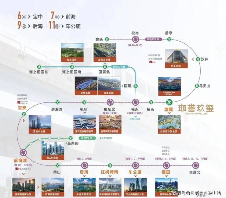 门口就是宝安大道及凤塘大道等交通主干道,11号地铁线“塘尾站”,距离约300米,4站到宝安机场,6站到宝中,7站到前海湾,8站到南山,11站到车公庙。鸿荣源珈誉玖玺家门口就是宝安大道及凤塘大道等交通主干道