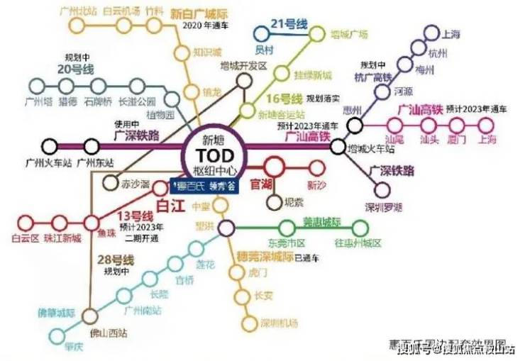 从TOD枢纽出发,到广州东站约15分钟,到东莞约20分钟,到深圳机场最快需30分钟左右,未来2小时到达汕尾;届时,项目物业价值必定有质的飞跃 。