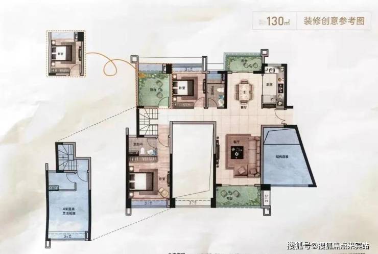 【平层127㎡户型】奇数楼层6米挑高,品质精装,赠送率高,独特复式设计,双套房居住体验;