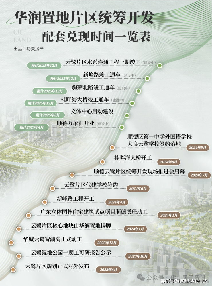 3️⃣教育:顺德一中外国语学校大良云鹭校区(华润代建,公立小学+初中;预计2027年6月交付)、顺德机关幼儿园(华润配建,18班,又名华辰幼儿园;预计2025年9月开园)