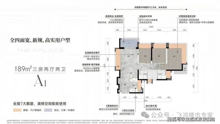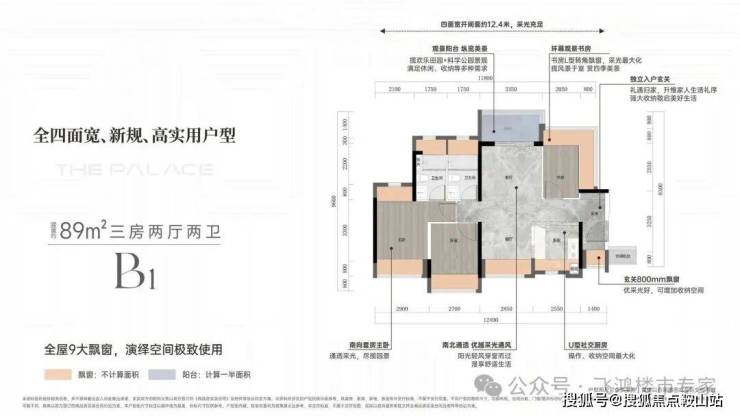 ,远超市场平均水平,这得益于建筑新规设计通过大面积凸窗、阳台等赠送面积。