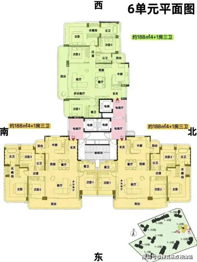 6栋,24层,3梯3户,约188平,可售69套。