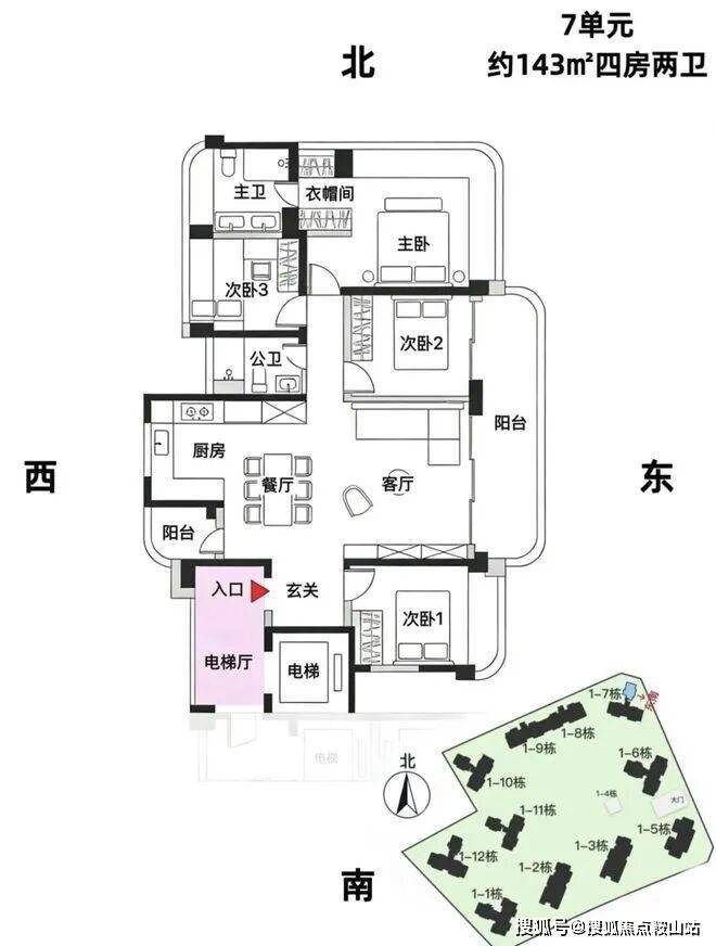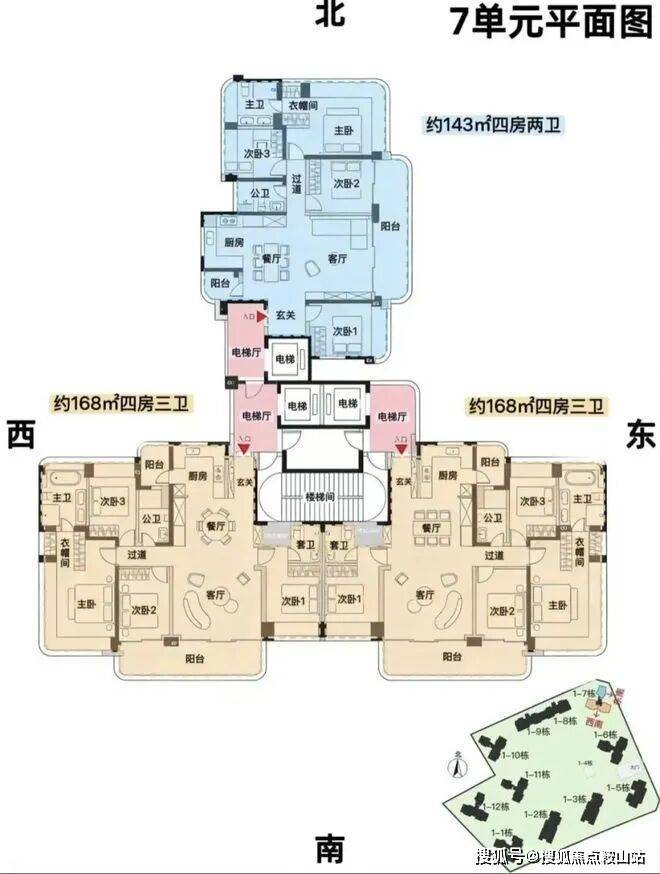 7栋,24层,3梯3户,约143/168平,可售69套。