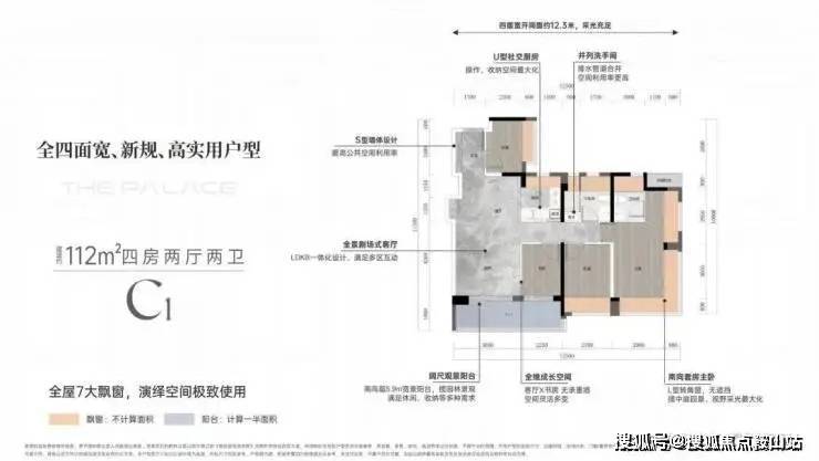 首推一期1栋1单元,面积约89-112㎡ 3-4房,主力产品为89㎡3房,其A1户型为常规经典竖厅,但是在客厅位置多了一个长飘窗,且每个户型都有270度大飘窗。