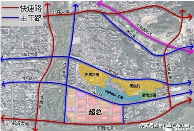 深圳湾超总地处深圳东西发展脉络和南北山海通廊中心