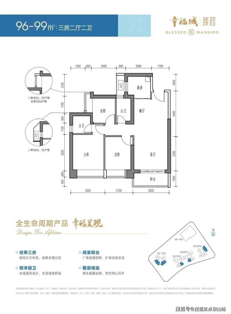 经典竖厅格局,客厅3.5米开间,U型厨房,得房率约81-84%。