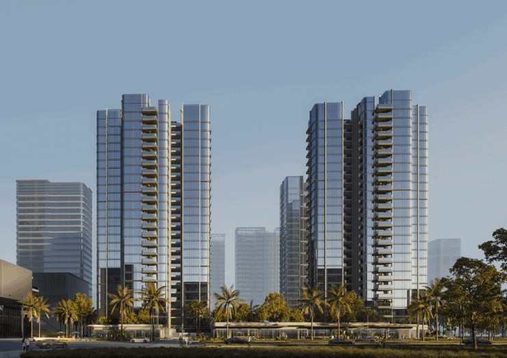 GAD团队在建筑规划上进行了一场突破性的革新。项目由四栋25层点式艺术塔楼组成,摒弃了传统的板式结构,创新采用“点式平面布局”。