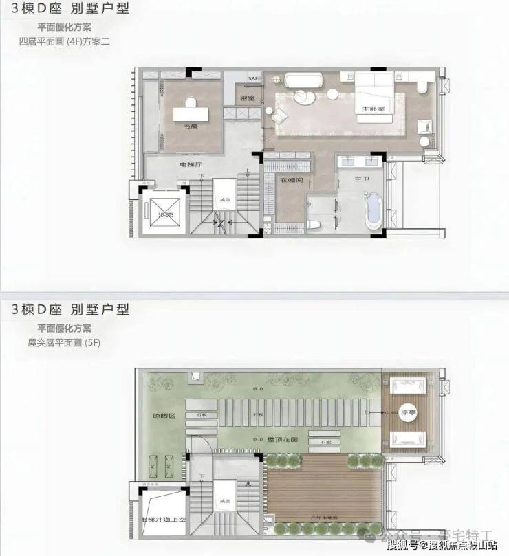 【约386㎡4+1房4卫】双梯入户,独立电梯厅,阔绰横厅直连多功能空间,三面舒适采光,主次卧双套房,270°环幕视野,还有独立家政套间,西朝向看名商高尔夫和大河沙生态长廊。