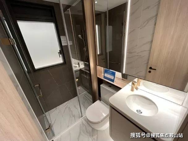 洗手间采明厕设计,装修简约,地板以白色云石瓷砖铺切,墙身以灰色石纹打造,亦设有两边镜柜,储物空间充足,交楼备设浴室宝。