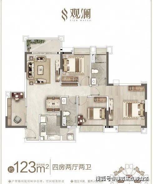 户型格局规划科学合理,空间明亮舒适独立书房,
