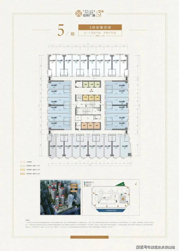 在售产品:约39-101㎡酒店式办公、约69-109㎡开放式办公