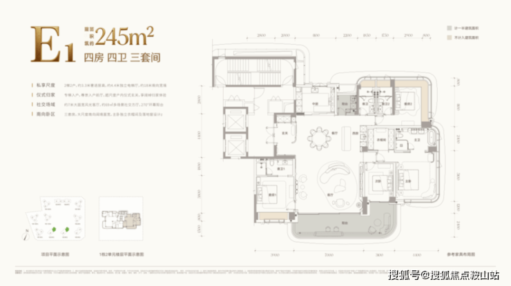 E户型 约245㎡四房四卫