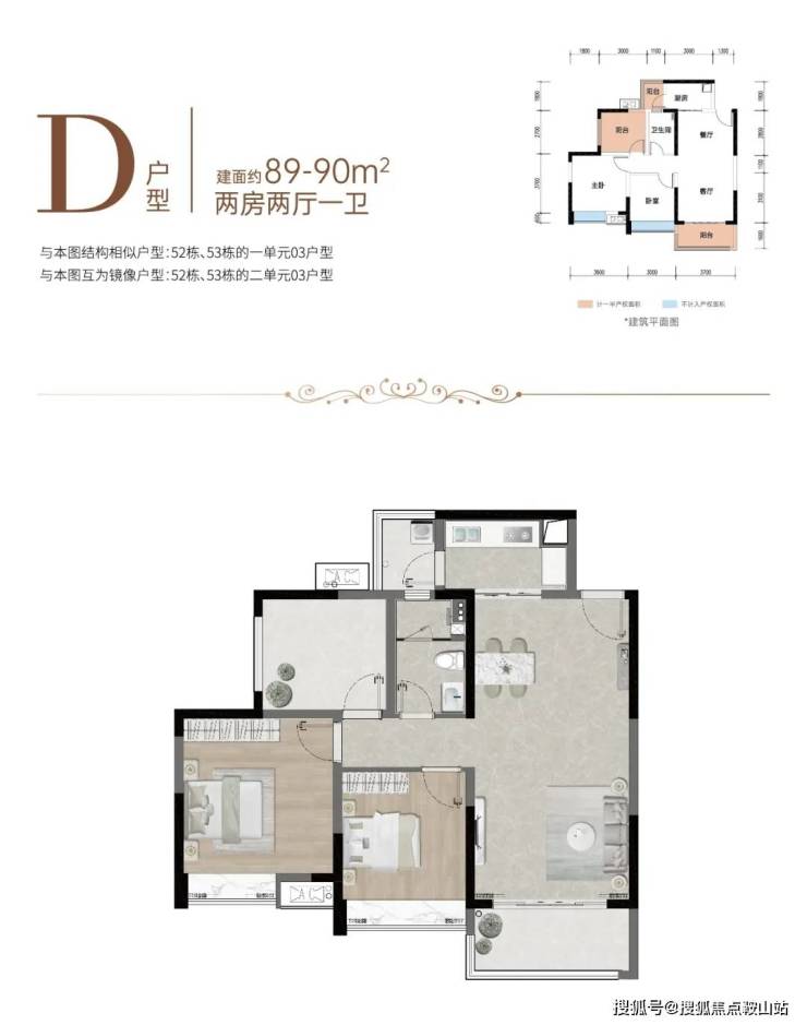 | 约89-90㎡ 2房2厅1卫 |客卧开间朝南,全明采光体验,享双阳台配置,一揽风情园林,客餐厨一体化,延展生活尺度,超阔尺度主卧,突显格调品味