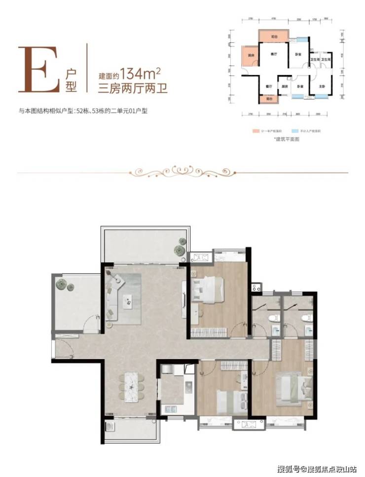 | 约134㎡ 3房2厅2卫 |南北通透奢阔户型,彰显生活品质,四面全明采光设计,感受阳光满屋,约4.7m大开间客厅,尊崇品位人生,主卧独立衣帽间,私享静谧体验
