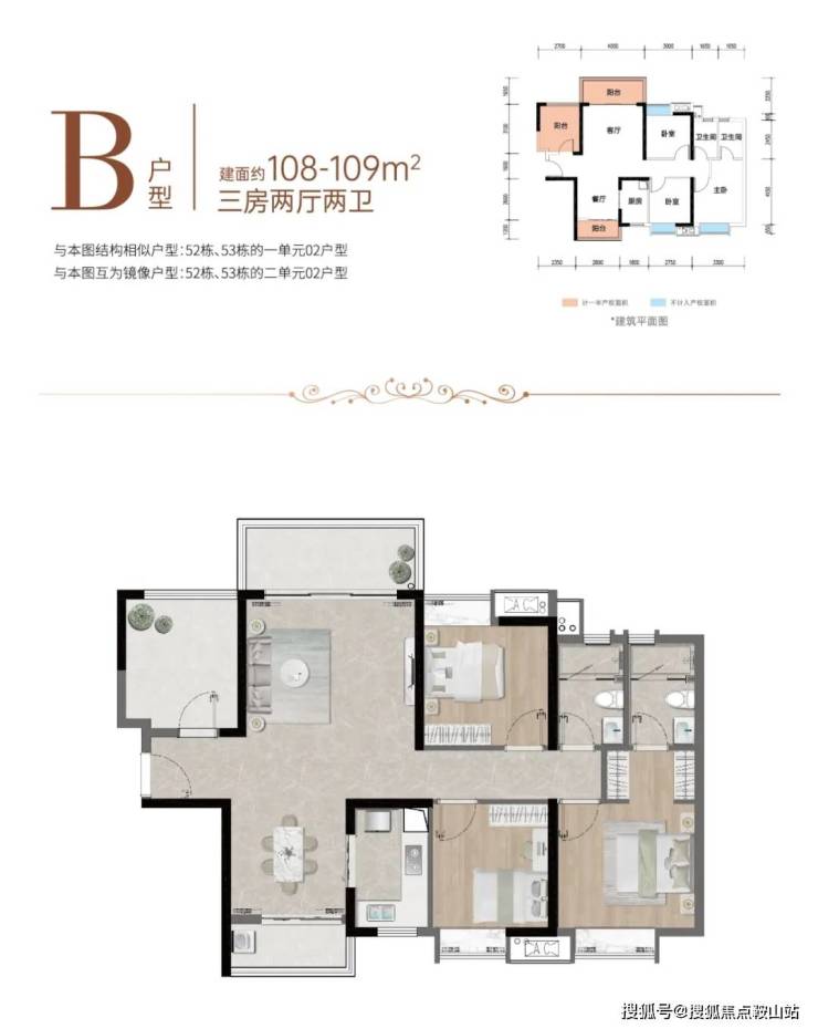 | 约109㎡ 3房2厅2卫 |南北双向阳台,悦享对流清风,入户多功能间,满足个性需求,约4m开间客厅,社交大有可为,主卧套间设计,尊享私密生活