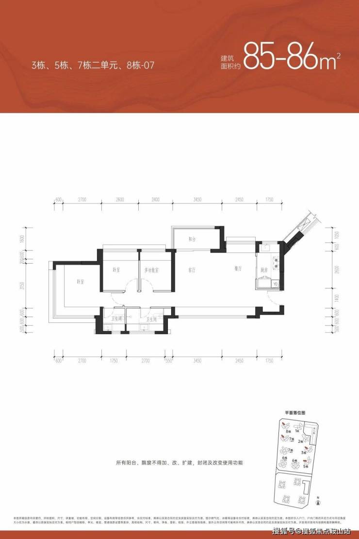 | 约85㎡(横厅)三房两厅两卫【总价约415-455万】