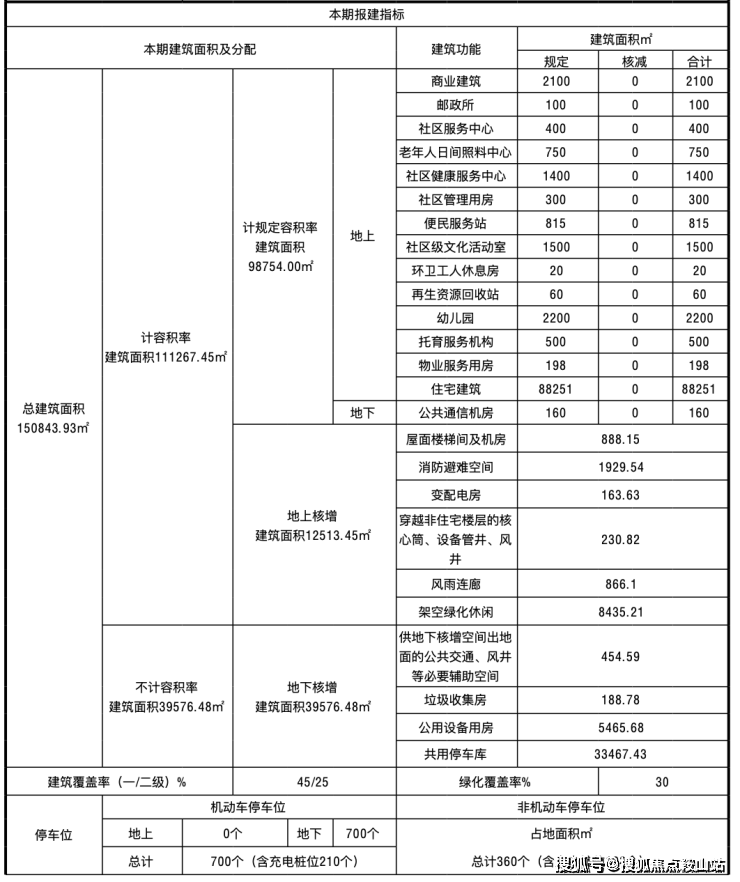 总建筑面积150843. 93㎡,住宅建筑88251㎡,商业建筑2100㎡,还有社区服务中心、老年人日间照料中心、社区健康服务中心、社区管理用房、便民服务站、幼儿园、托育服务机构等配套。停车场700个(全部地下)。