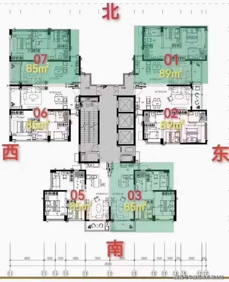 🔻建面约90㎡(或89㎡)——01户型(东向)