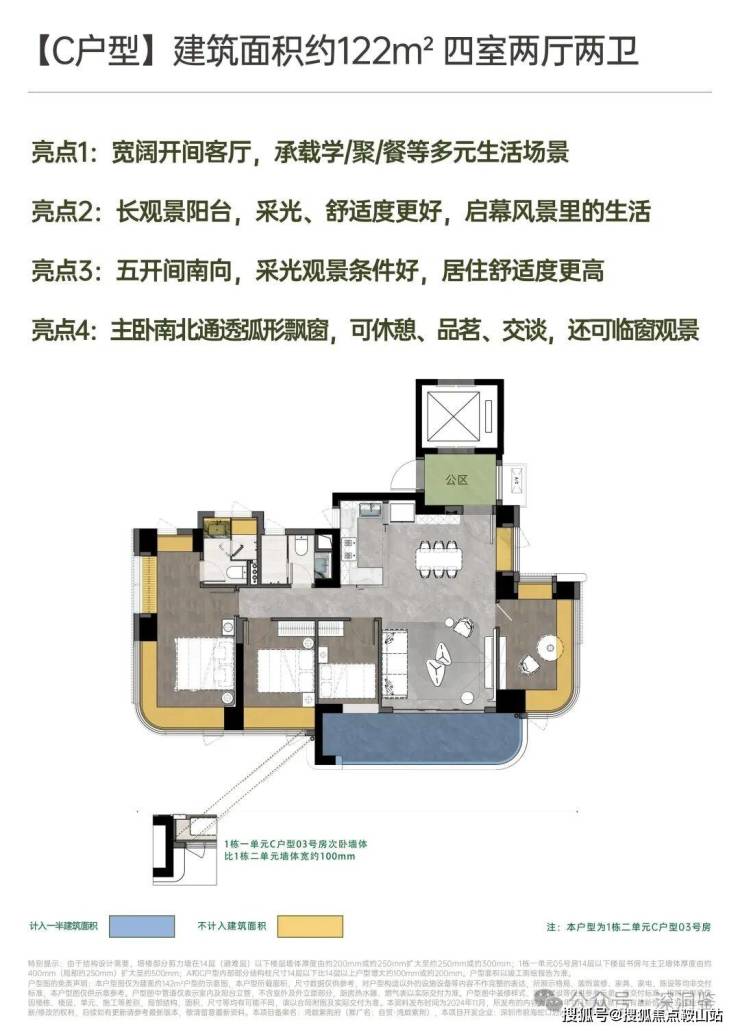 【建面122㎡4居】4室2厅2卫, 东南西南向竖厅,楼栋分布于1栋/2栋