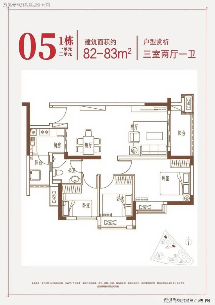 约82-83㎡三房两厅一卫:端头位设计,全采光,部分户型可享山海景观,双阳台布局,实用率高,总价约333-379万。