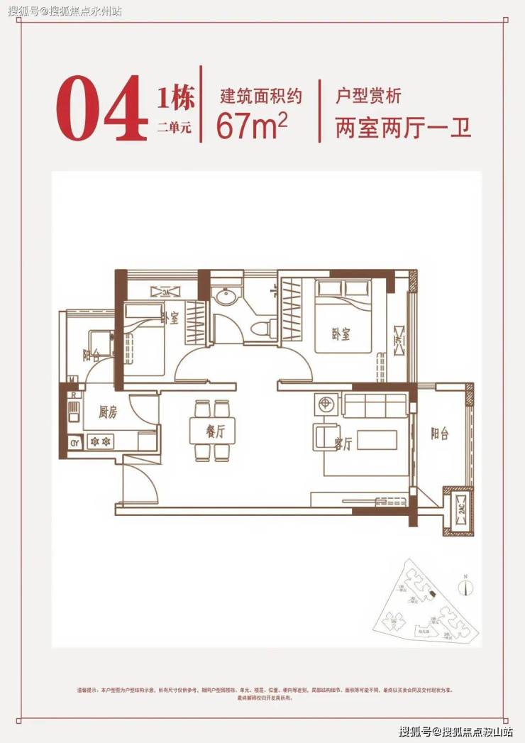 约67㎡两房两厅一卫:东南朝向,片区内唯一在售两房户型,总价约288-309万,适合刚需购房者。