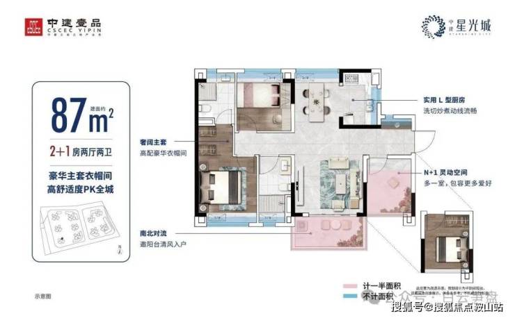 建面约87㎡丨南北通透主套大3房