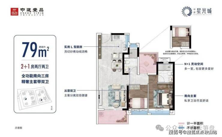 建面约79㎡丨主套双卫3房 东南向瞰园林