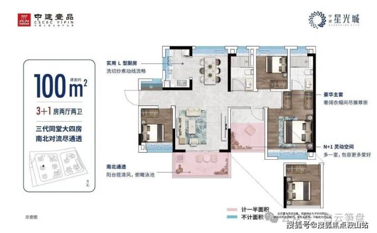 建面约100㎡丨会呼吸的大4房