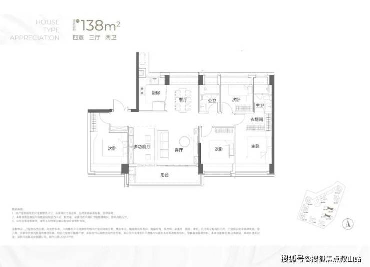 设计的是竖厅双龙抱珠格局,客厅3.5米开间,LDKB一体化,4个卧室分别做到了3.7米/3.4米/2.8米/2.6米的宽度,主卧加2个次卧270°全景飘窗,客厅连接次卧出6.1米长的大阳台,U型厨房,得房率约95-97%(包含赠送),西南或东南朝向。