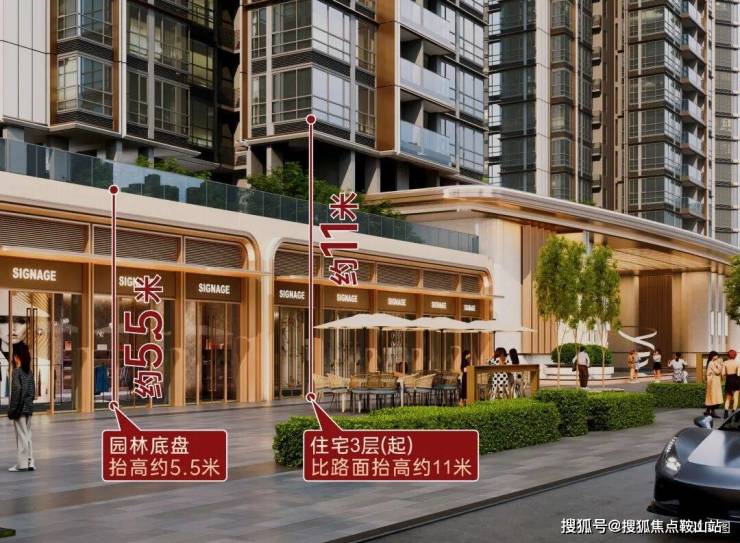 社区园林整体抬升约 5.5 米,住宅自3楼起,标高较外部地面高出约11米。