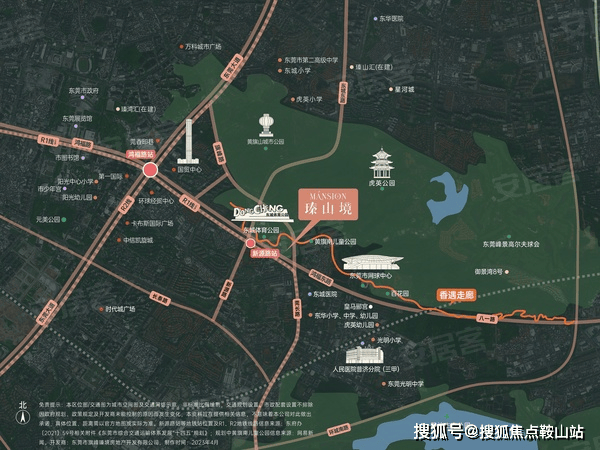 项目坐落于东莞黄旗南生态科创区,鸿福路百年大街,与黄旗山直线距离仅约 50 米,占据城市资源精华处。