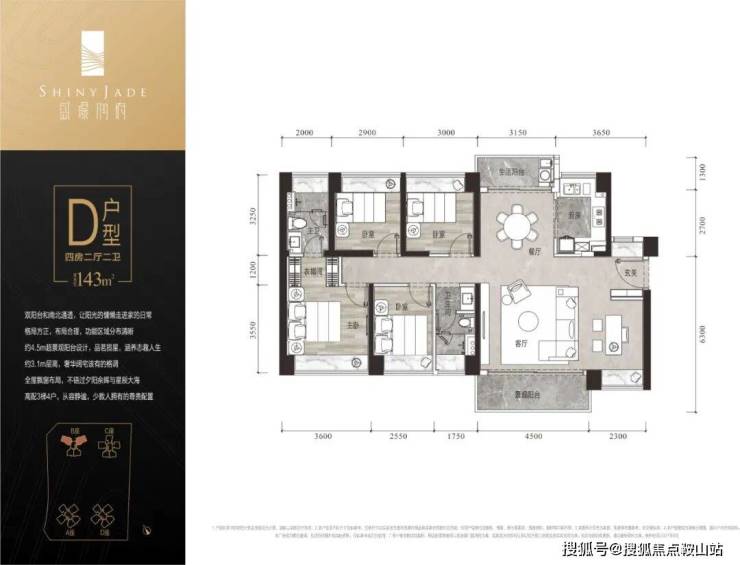 建面约143㎡四房两厅两卫:户户偏南朝向,冬暖夏凉,生活舒适;双阳台、客餐厅一字型排布,奢阔开间客厅,彰显格调生活;南北双景观阳台,品茗揽星,涵养志趣人生;主卧配备约3.6m阔景飘窗,最大限度延景入室;少数人享有的3梯4户奢侈梯户比,绘就龙华城芯美好生活。
