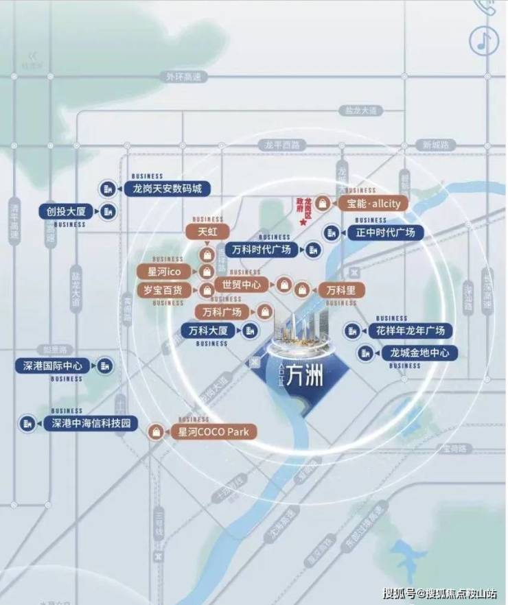 项目规划约80万㎡高端产业办公及总部商务集群,涵盖甲级写字楼、产业研发空间,形成智慧型创意产业都心。周边聚集千余家国家级高新技术企业,依托龙岗五大产业板块(国际科教城、大运北科创城等),打造产城融合示范区。