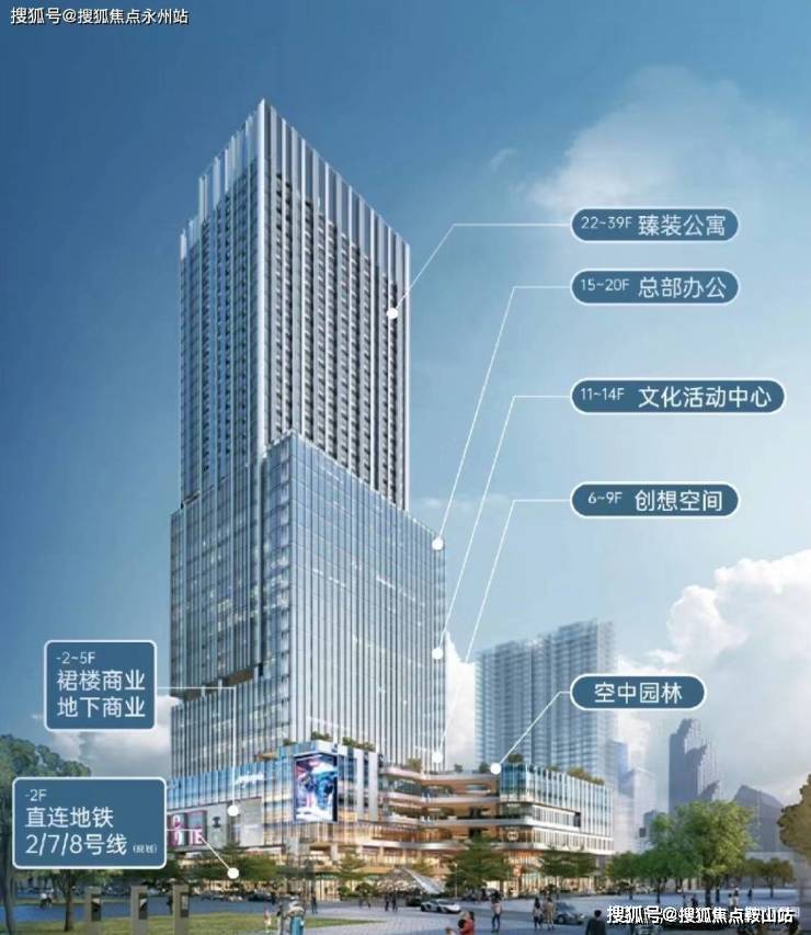 楼层分布:共39层,-2至5层为地下及裙楼商业、6-9层为商业、15-20层为办公、22-39层为公寓