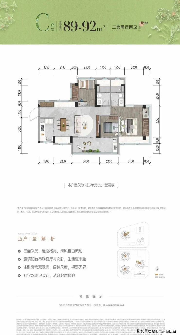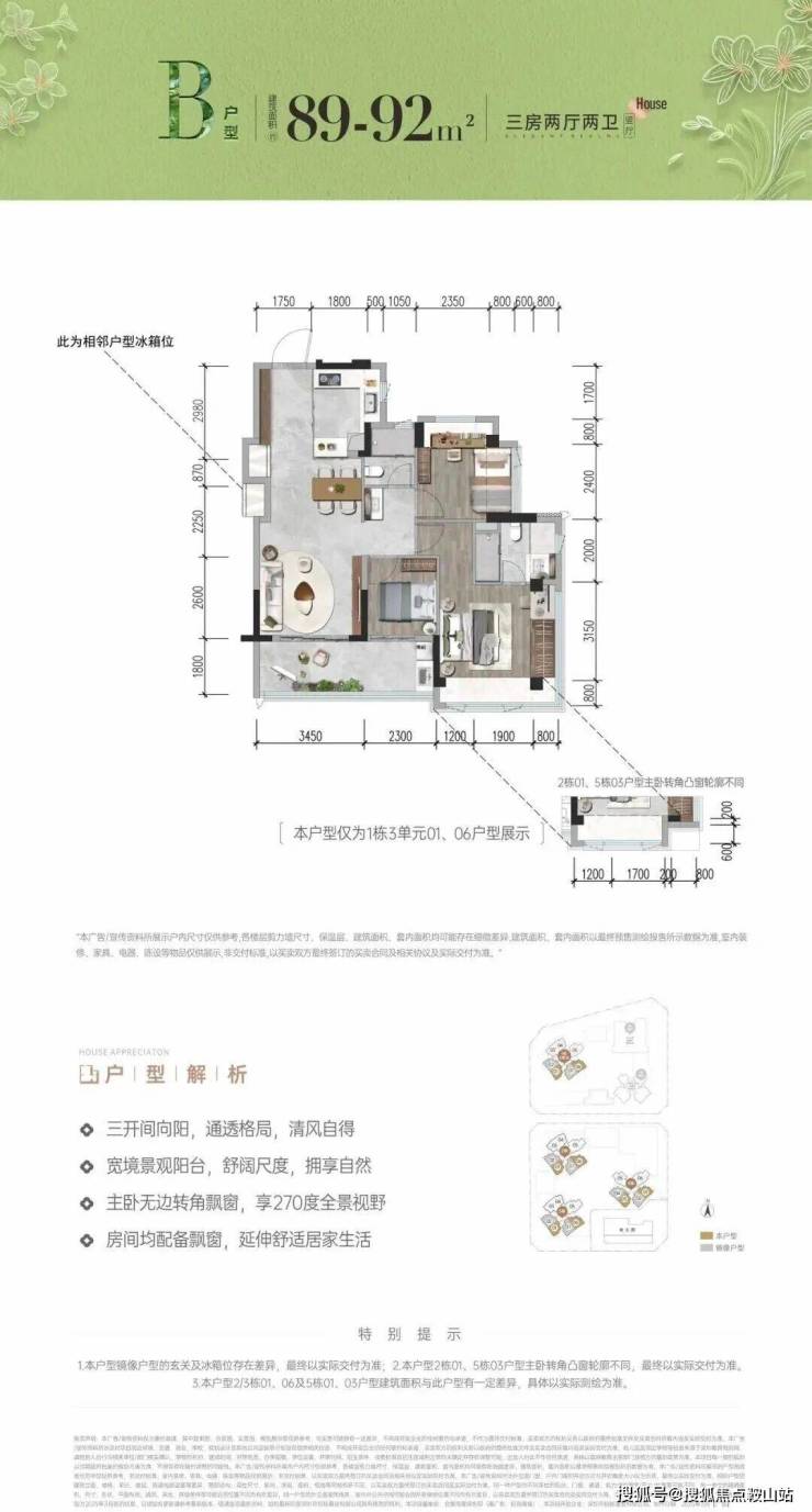 首次推首北地块1栋3单元,约80-92㎡ 3房,共195套,新规使用率高达96%-105%!