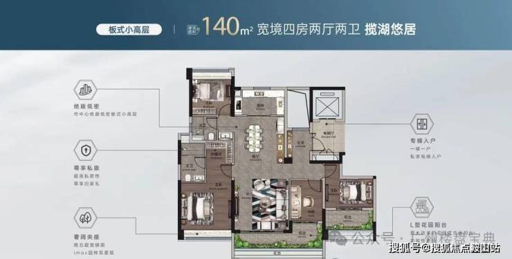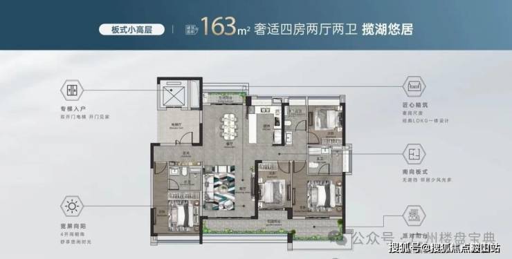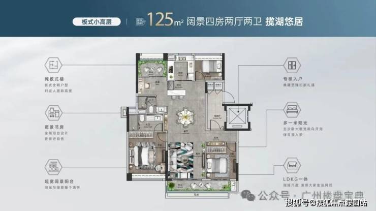 建面125平四房,专梯专户,约6.85米的宽景大阳台把湖景尽收眼底,