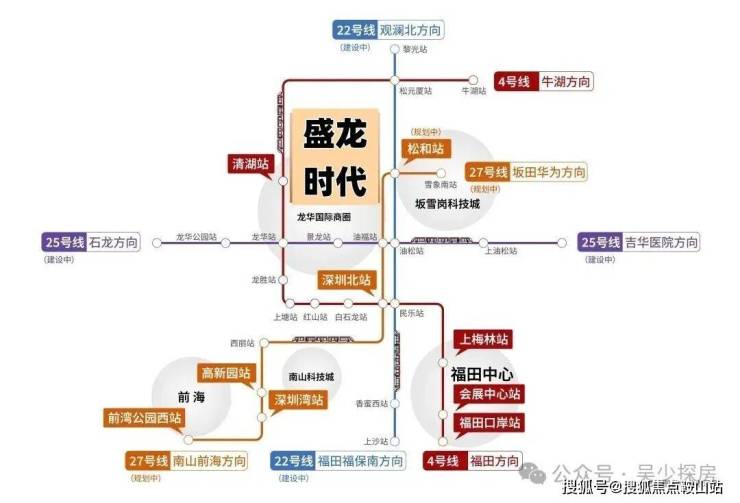 盛龙时代家门口就是4号地铁线“清湖站”,5站到深圳北站,6站到南山,8站到福田,另外还有27号地铁线“松和站”距离约1.3公里,正在建设中。