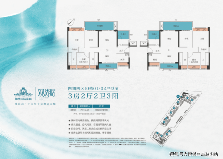 115㎡3+1房:双阳台设计,双向观湖,三代同堂首选。