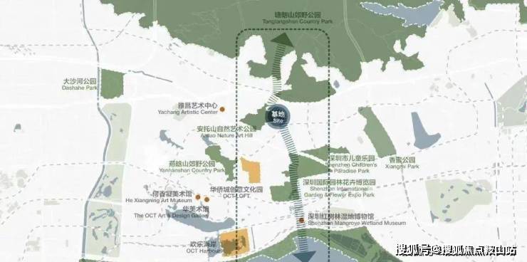 项目地址位于深圳市南山区桃源北环大道北侧塘朗山南麓,邻近深云地铁站。项目大体被山体包裹,西侧和南侧分别临近南坪快速路、北环大道两条城市快速路,其东侧还将建设侨城东路北沿线(建设中),所处片区相对割裂存在。