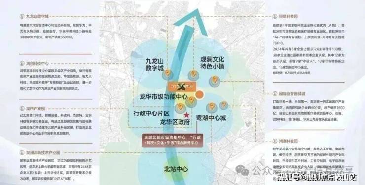 作为龙华区政府的所在地,区域发展潜力显著。观澜占据龙华区70%的产业资源,以鹭湖中心城和九龙山数字城为核心,聚焦人工智能、生物医疗等高新技术产业,打造“深圳北部硅谷”。