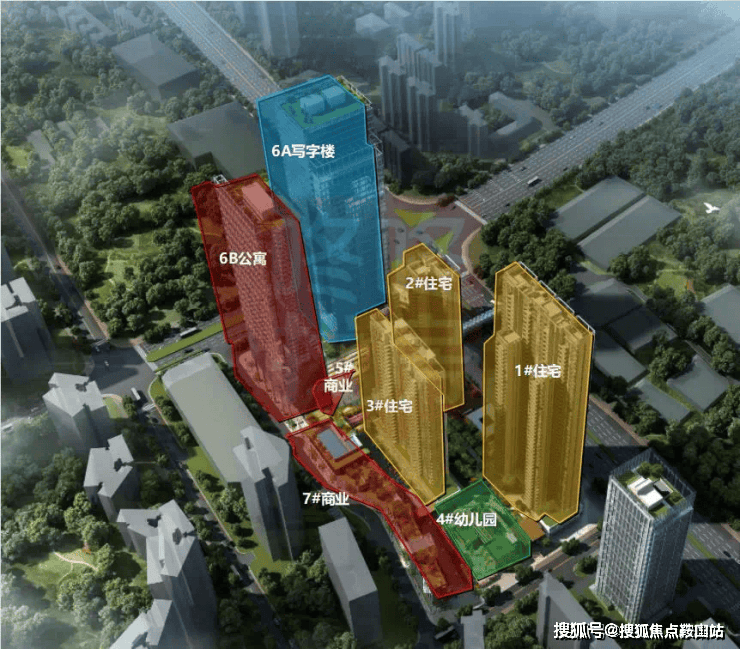 其中6A栋为6-35层为办公,37-42层为公寓;6B栋6-9层为酒店,10-42层为公寓。