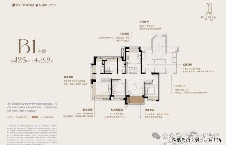 6个飘窗满飘窗赠送+北次卧270°转角飘窗,半开放式厨房+大空间餐厅+S墙设计,均价是所有户型中最低的7.85万/㎡。