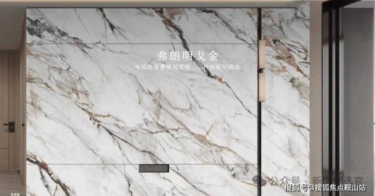 充分考虑业主的个性化需求,在电视背景板提供了 新潘多拉、云中翡翠、弗朗明戈金三种结晶釉面岩板选择,成本更高,施工难度也更大。