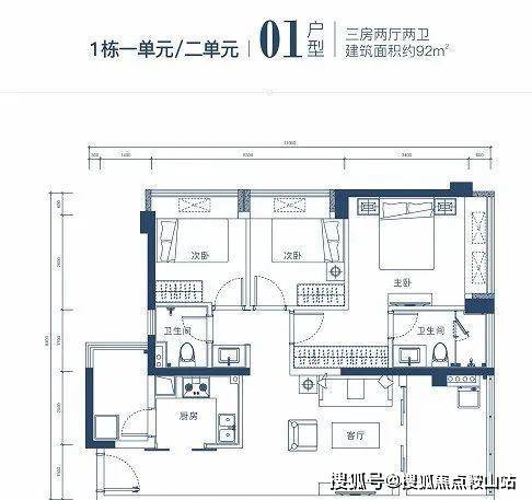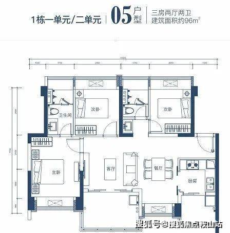 三卧居住空间配置均衡,符合刚需需求,开间进深比良好空间利用充分;