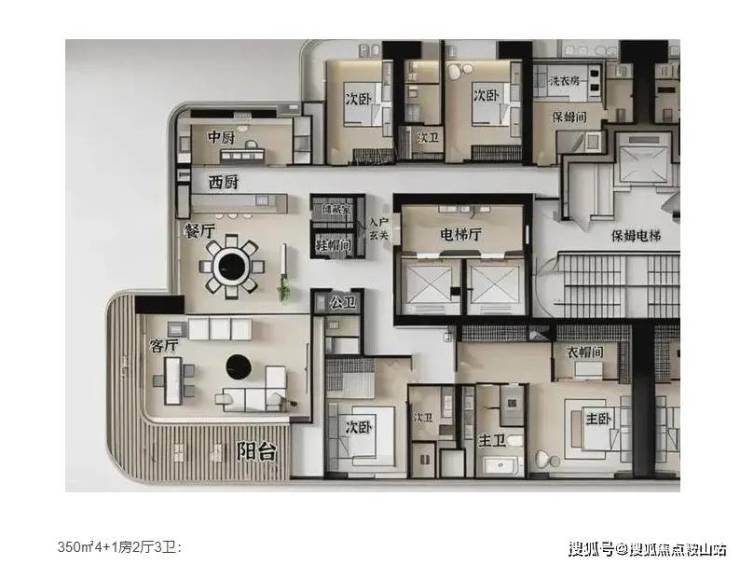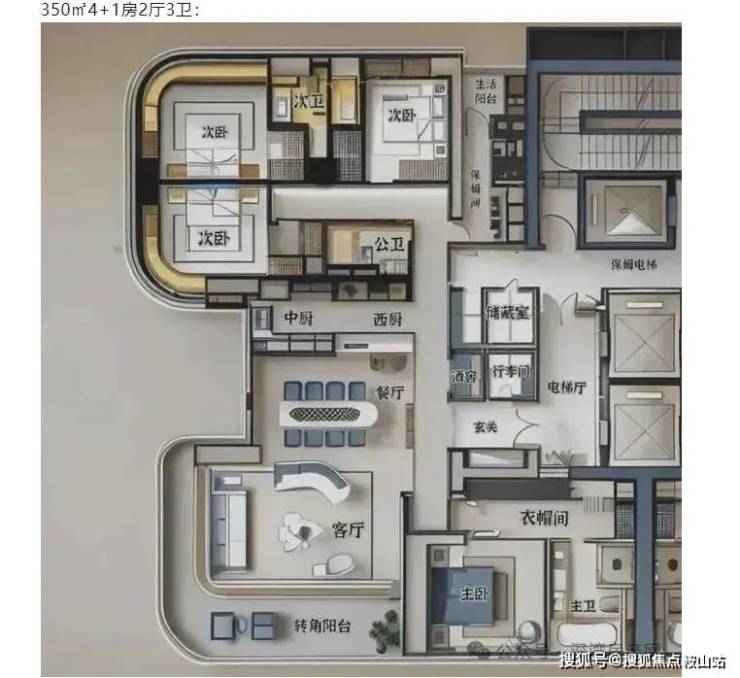 豪宅基本配置,专梯入户,该户型属于传统竖厅结构,动静区分明,客厅与厨房同处一条直线,卧室则处于另一块静区,由于该栋单层3户,做不到其他栋两户或单户的客厅180度多面景观设计,只能牺牲小户型,估计这一栋定价也是最低的,上车门槛估计2800起步。