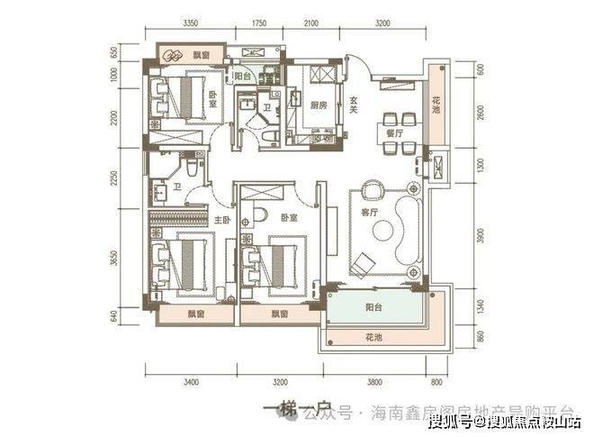 平墅:B2户型三房两厅两卫:建筑面积约110㎡
