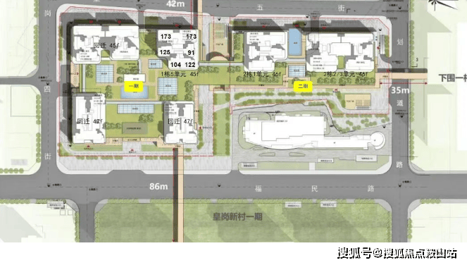 项目一期由福民路、皇岗二街、皇岗四街、皇岗五街围合而成,总占地面积约3.14万㎡,总建筑面积约27.3万㎡,住宅建面约为20.3万㎡,商业建面约为7万㎡;整个项目以“立于城市中轴,缔造时代标杆”为核心理念,旨在构建一个融合现代与历史人文特色的城市大综合体。