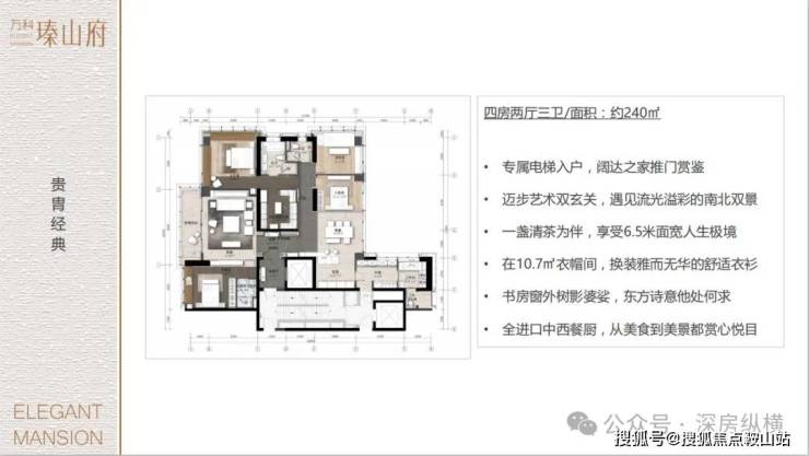 项目户型非常纯粹,均为建面约230-240㎡通透大平层,3梯2户,全四房设计,享艺术双玄关。