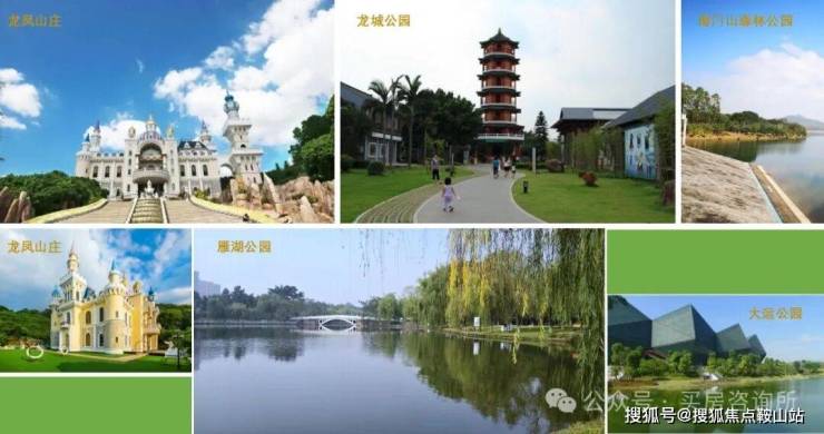 休闲配套:龙凤山庄旅游度假山庄、南门山森林公园、碧湖森林公园、雁湖公园、凤凰山公园、龙城公园等多公园环绕,生态资源丰富