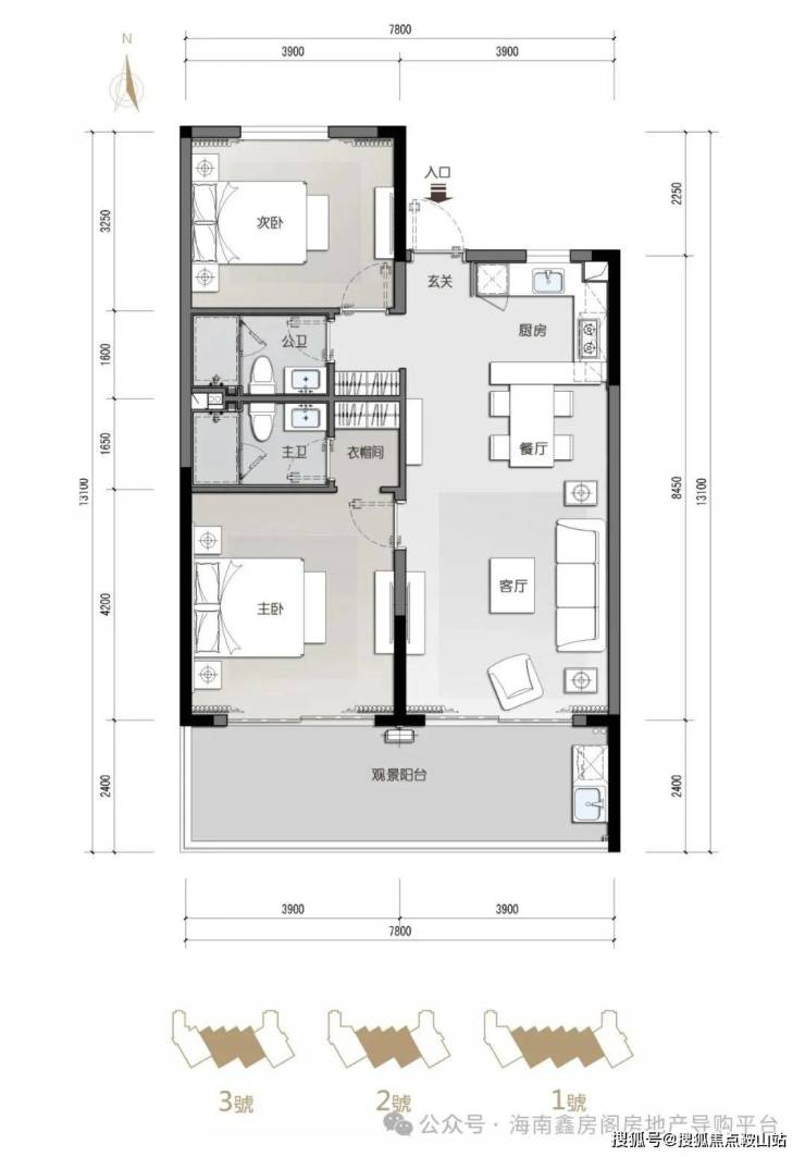 3栋低密纯板高层建筑,一字布局,户户坐北朝南,皆享20㎡超大观景阳台180°瞰海观山的极致视觉,海天山色尽收眼底。1.35绝版超低容积率只为成就223席高端舒适的完美胜境。